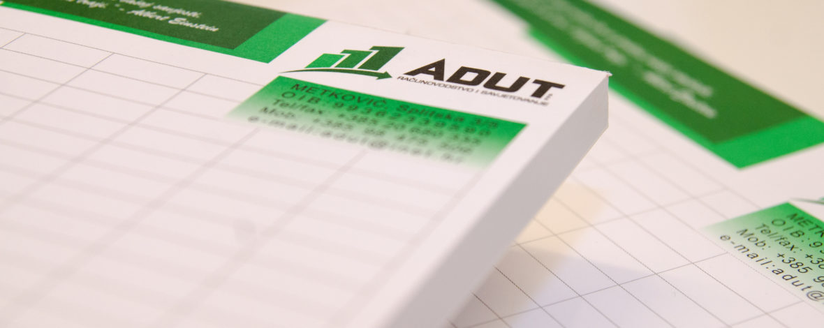 Poduzeće Adut d.o.o. osnovano je 2006. godine za obavljanje poslova knjigovodstva, računovodstva i pratećih uslužnih djelatnosti s osobitim naglaskom na savjetodavne usluge vezane uz poslovanje.